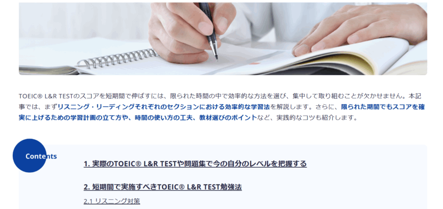 記事の内容は、TOEIC関連が約7割、英語関連の記事が3割程度の構成で、初学者の方から上級学習者の皆様までお役に立てる内容だと自負しております。是非ご高覧ください。